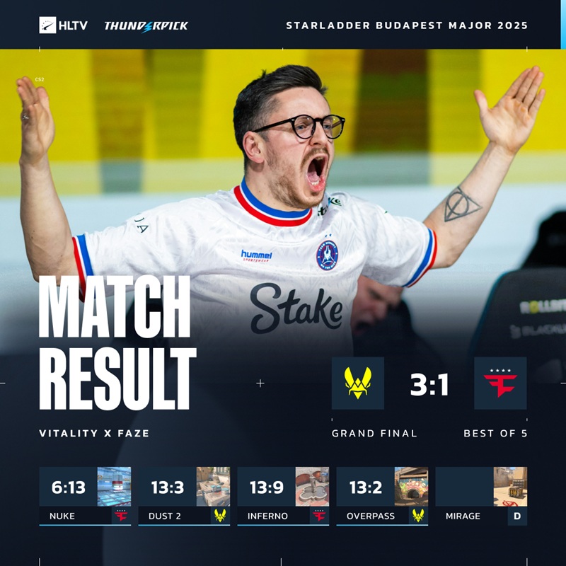 - Vitality kini resmi menjadi tim dengan dua Major CS2 berturut-turut, memperkuat status mereka sebagai salah satu organisasi paling dominan dalam sejarah Counter-Strike.