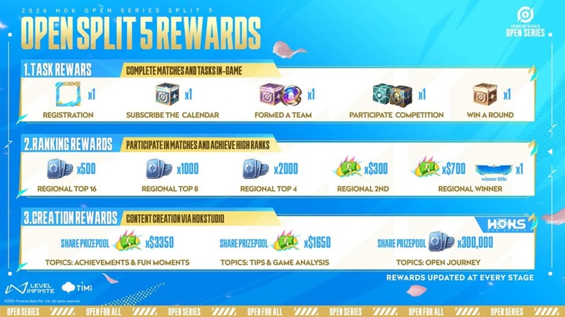 Melalui Open Series Split 5, Honor of Kings kembali menegaskan komitmennya bahwa semua pemain punya kesempatan yang sama untuk merasakan atmosfer kompetisi esports, tanpa harus memandang rank maupun latar belakang tim.
